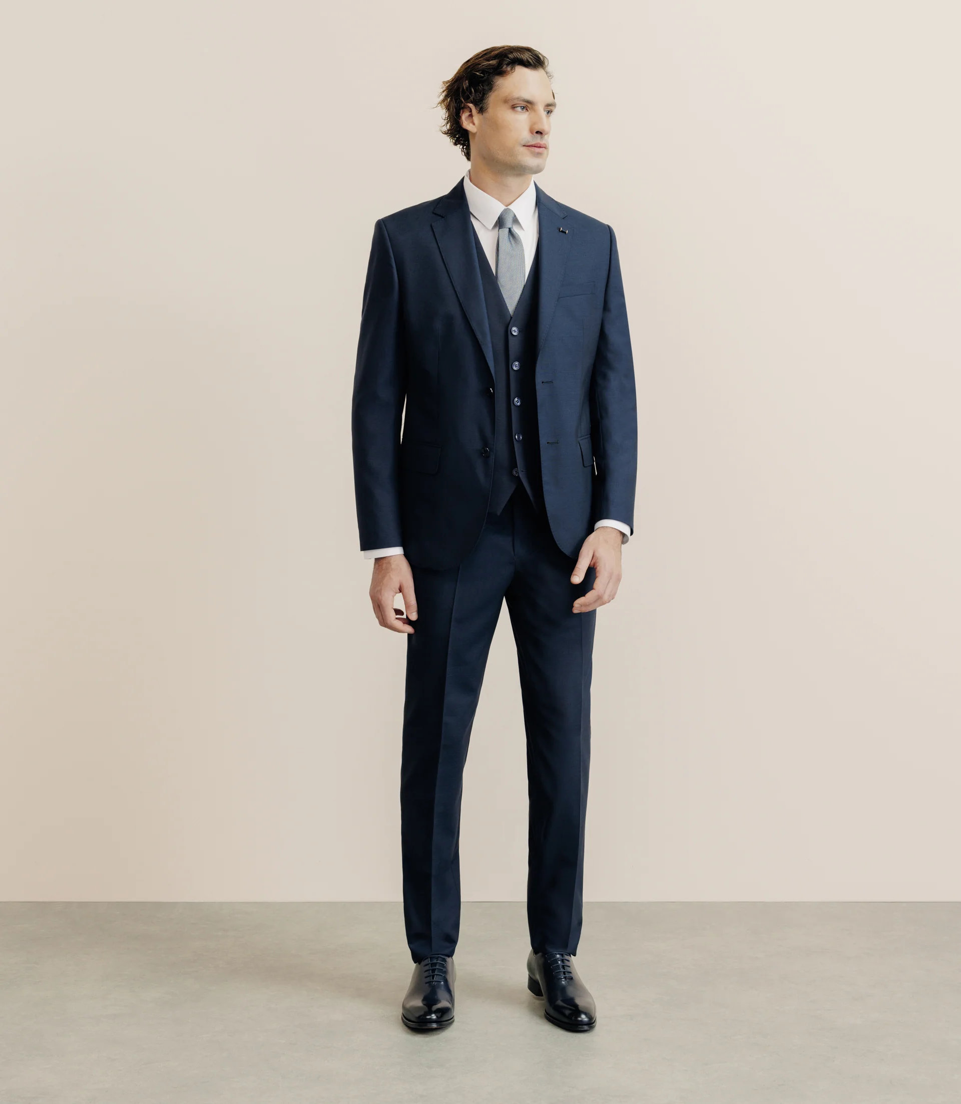 Costume 2 boutons en laine natural stretch marine FLATTEUR – IZAC