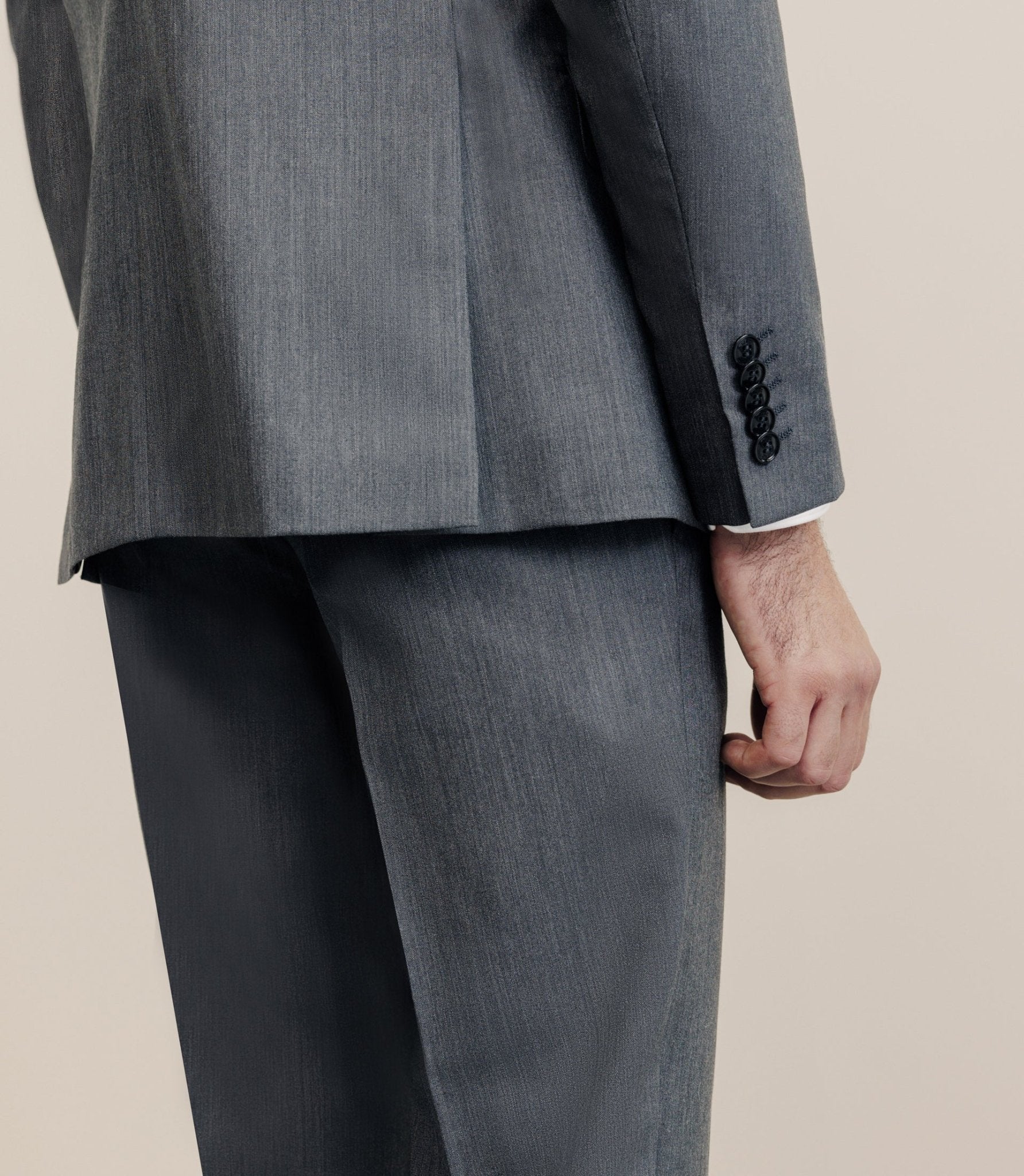 – Tissu : uni en laine natural stretch, autrement appelé stretch mécanique, le stretch est conféré par le tissage uniquement